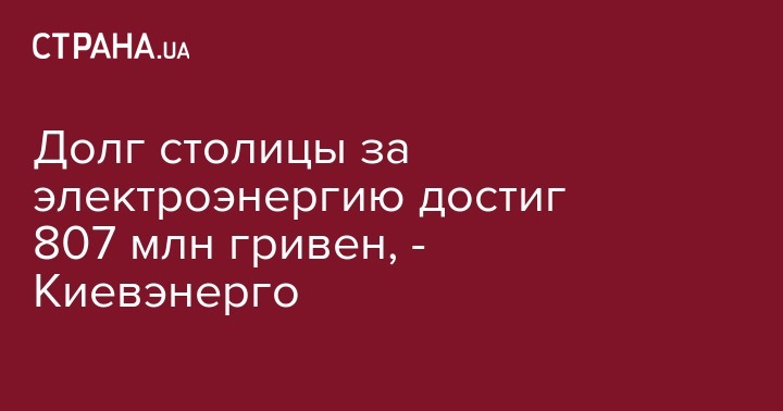 Долг столицы за электроэнергию достиг 807 млн гривен, - Киевэнерго