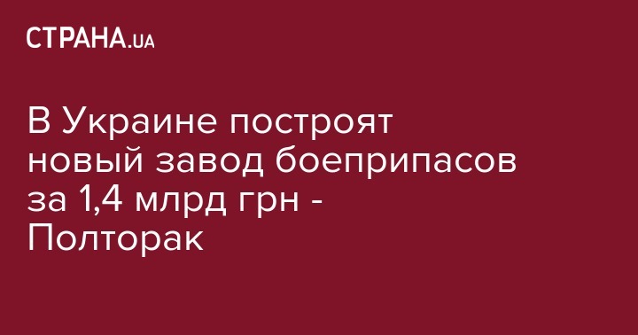 В Украине построят новый завод боеприпасов за 1,4 млрд грн - Полторак