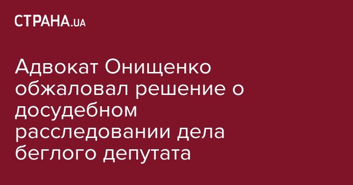 Защита депутата Верховной Рады Александра Онищенко обжаловала решение Соломенского районного суда Киева, который разрешил начать специальное досудебное расследование против беглого депутата.