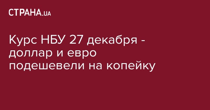 В среду, 27 декабря, Нацбанк установил курс гривны по отношению к иностранным валютам. По сравнению с 26 декабря доллар и евро незначительно подешевели. Об этом сообщает сайт НБУ.