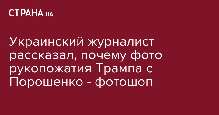 Журналист "Украинской правды" Алексей Братущак рассказал о том, что протокольная съемка (рукопожатие на камеру) президентов Порошенко и Трампа является "явным фотошопом". Об этом он написал на странице в Facebook.