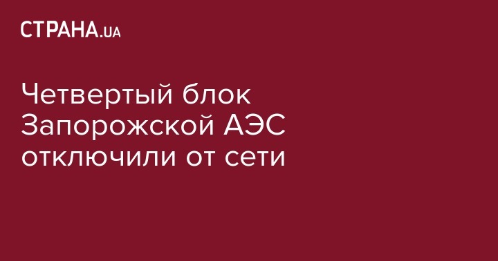 Энергоблок №4 Запорожской АЭС в настоящее время отключен от сети по заявке для устранения негерметичности газовой системы турбогенератора. Об этом сообщает официальный сайт  атомной станции.