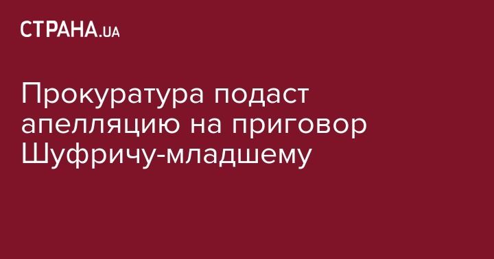 Столичная прокуратура подаст апелляционную жалобу на приговор Печерского районного суда Киева, который приговорил Нестора Шуфрича-младшему к условному наказанию,  за совершение ДТП, в результате которого пострадал пешеход. Об этом сообщили в пресс-службе прокуратуры Киева.