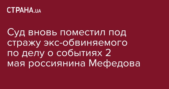 Приморский районный суд Одессы арестовал до 18 января 2018 года бывшего обвиняемого по делу о событиях 2 мая 2014 года (в части событий на Греческой площади) гражданина РФ Евгения Мефедова, которого вернули, не обменяв на пленных со стороны "ДНР".