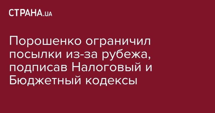 Порошенко ограничил посылки из-за рубежа, подписав Налоговый и Бюджетный кодексы