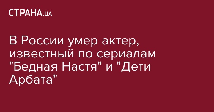 В России умер актер, известный по сериалам "Бедная Настя" и "Дети Арбата"