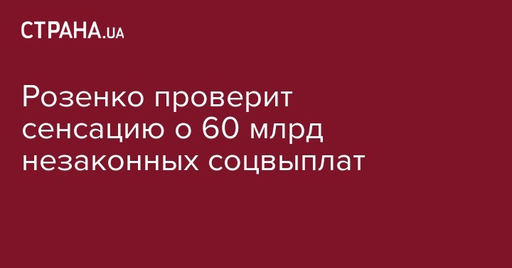 Вице-премьер-министр Украины Павел Розенко поручил трем ведомствам проверить сенсационное сообщение о 60 млрд гривен незаконных социальных выплат. Об этом вице-премьер написал на своей странице в социальной сети Facebook.