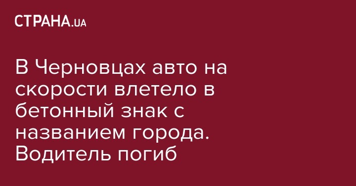 В Черновцах авто на скорости влетело в бетонный знак с названием города. Водитель погиб
