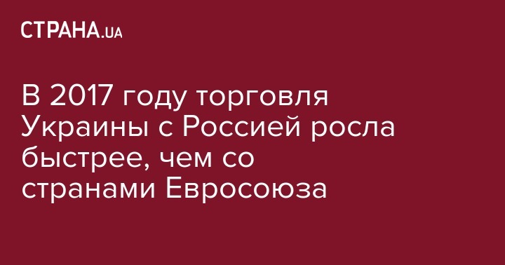 По данным НБУ, доля России в экспорте товаров из Украины в январе-ноябре-2017 сократилась с 9,1% до 8,5%, в импорте – увеличилась с 12,6% до 14,3%. При этом доля экспорта в ЕС возросла с 31,9% до 35,3%, импорта – с 36,9% до 37,5%. В целом, согласно данным регулятора, экспорт товаров из Украины за январь-ноябрь 2017 года вырос на 20,1% – до $36,19 млрд, импорт – на 21,8%, до $44,03, а негативное сальдо ухудшилось на 30,2% – до $7,84 млрд.