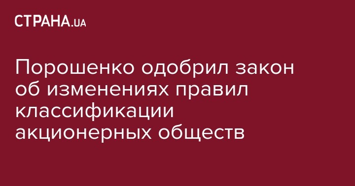 Порошенко одобрил закон об изменениях правил классификации акционерных обществ
