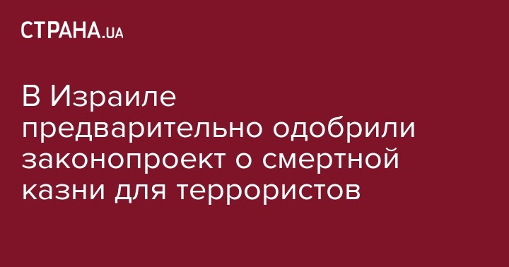 В парламенте Израиля в предварительном чтении утвердили законопроект о смертной казни для террористов. Об этом говорится в сообщении пресс-службы Кнессета.