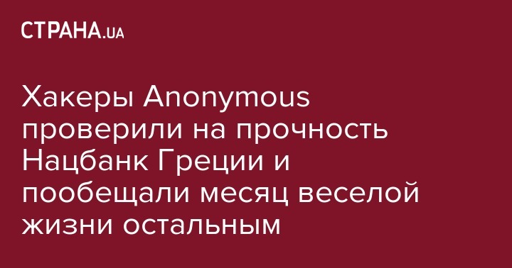 Хакеры Anonymous проверили на прочность Нацбанк Греции и пообещали месяц веселой жизни остальным