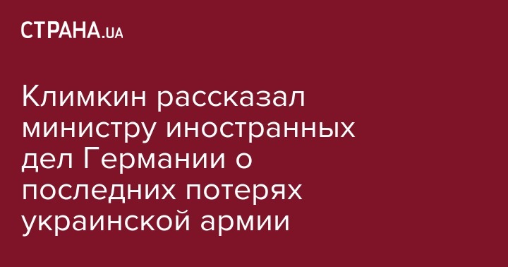 Глава МИД Украины Павел Климкин рассказал министру иностранных дел Германии Зигмару Габриэлю о потерях украинской армии на Донбассе, передает "Интерфакс".