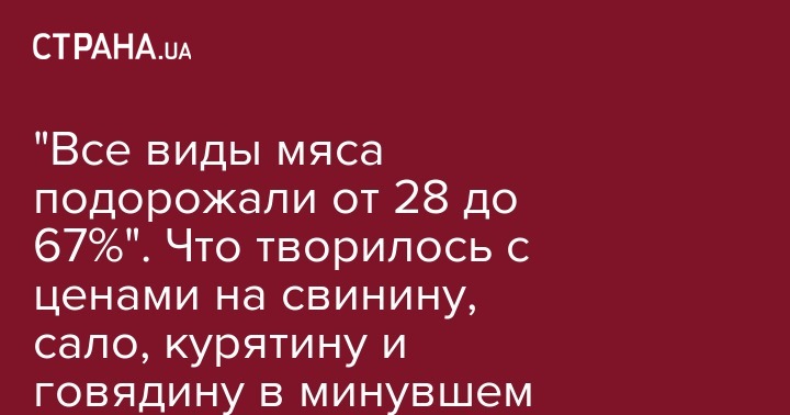 "Все виды мяса стали дороже на 28 - 67%, а именно: сало - на 67%, свинина - на 39%, говядина - на 33% и курица в тушке - на 28%. В прошлом году свинина и говядина прибавили в цене по 28 грн за килограмм, сало - 27 грн, колбаса вареная - 15 грн, а курица в тушке - 12 грн. Теперь килограмм говядины с костью можно купить в среднем за 116 грн, Свинины - за 101 грн, сала - за 68 грн, вареную колбасу - за 76 грн, а курицу - за 54 грн", - пишет эксперт.