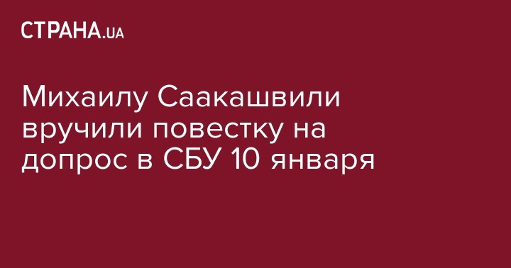 Лидеру "Руха нових сил", экс-губернатору Одесской области Михаилу Саакашвили СБУ вручила повестку на допрос 10 января.