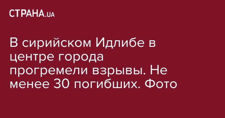 В сирийском Идлибе в результате серии взрывов погибли по меньшей мере 30 человек погибли, еще 70 пострадали. Об этом сообщает издание Anadolu.