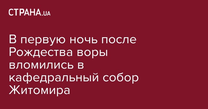 Свято-Михайловский кафедральный собор Житомира сегодня ночью ограбили неизвестные, эту информацию УНН подтвердила руководитель отдела коммуникации ГУ ЧП в Житомирской области Алла Ващенко.