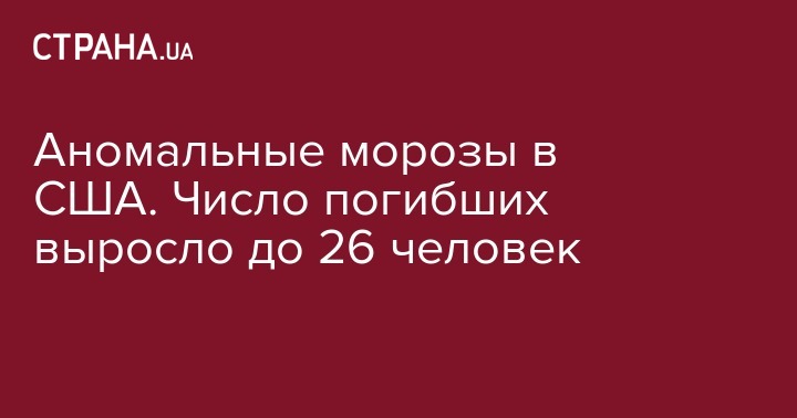 Непривычно сильные для востока США холода привели к гибели 26 людей. Об этом сообщает CBS.