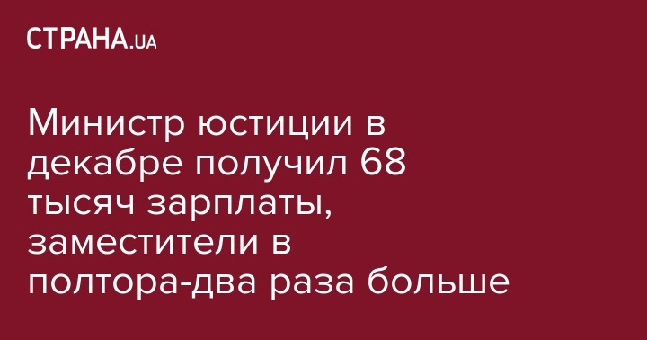 Министр юстиции в декабре получил 68 тысяч зарплаты, заместители в полтора-два раза больше