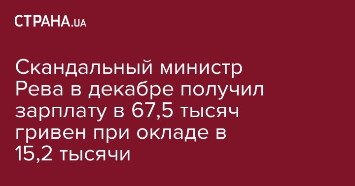 Скандальный министр Рева в декабре получил зарплату в 67,5 тысяч гривен при окладе в 15,2 тысячи