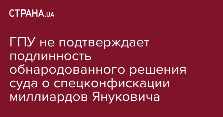 ГПУ не подтверждает подлинность обнародованного решения суда о спецконфискации миллиардов Януковича