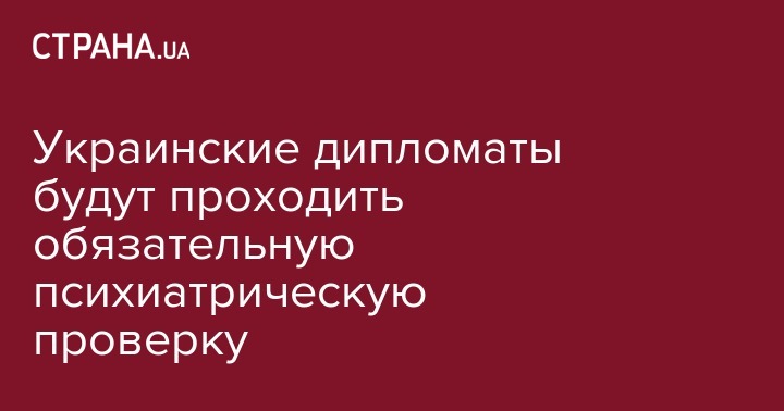 Кабмин обязал кандидатов на дипломатическую службу проходить обязательную психиатрическую проверку. Соответствующее решение было принято на заседании Кабмина 11 января, передают "Украинские Новости".