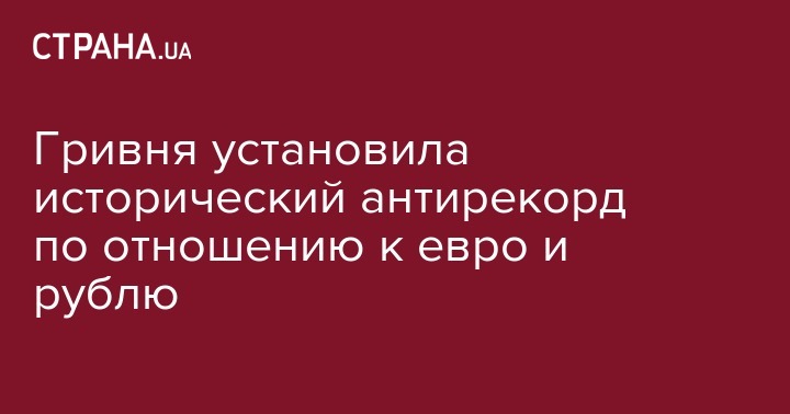 Гривня установила исторический антирекорд по отношению к евро и рублю