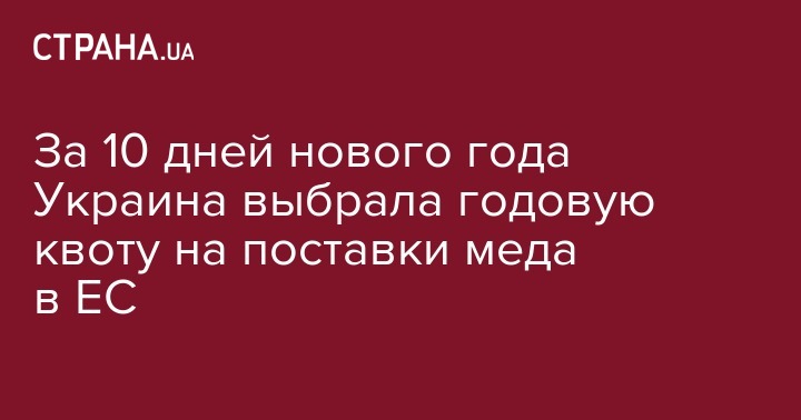 "На календаре – 11 января, а 100% экспортной квоты на поставки меда в ЕС уже выбраны, даже с учетом того, что в прошлом году ее объем был увеличен. Понятно, что экспорт на этом не останавливается, просто продолжается на общих основаниях (к счастью, украинский продукт является конкурентным на европейском рынке даже за пределами автономных преференций). Но в то же время дата 11.01 и нулевой баланс свидетельствуют о сверхвысоком потенциале этой отрасли", - заявил Мартынюк.