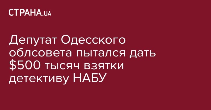 Депутат Одесского облсовета пытался дать сотруднику Национального антикоррупционного бюро (НАБУ) 500 тыс. долларов взятки.