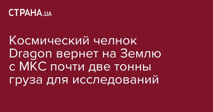 Космический челнок Dragon вернет на Землю с МКС почти две тонны груза для исследований