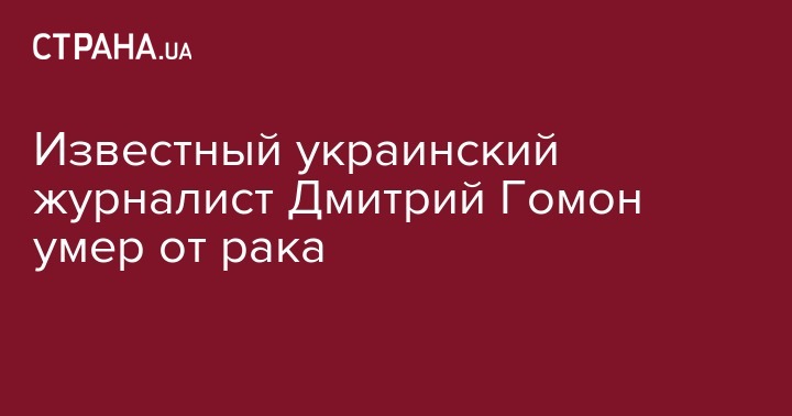 Как известно, у Дмитрия Гомона был рак поджелудочной железы IV стадии. Окончательный диагноз ему поставили только в начале января в Израиле. Украинские онкологи убеждали, что журналист болеет раком печени.