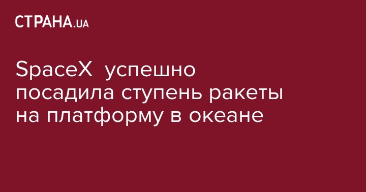 Первая ступень ракеты Falcon 9, принадлежащая частной космической компании SpaceX, во второй раз успешно приземлилась на беспилотную платформу в океане после запуска в космос. Об этом сообщается в Twitter компании.