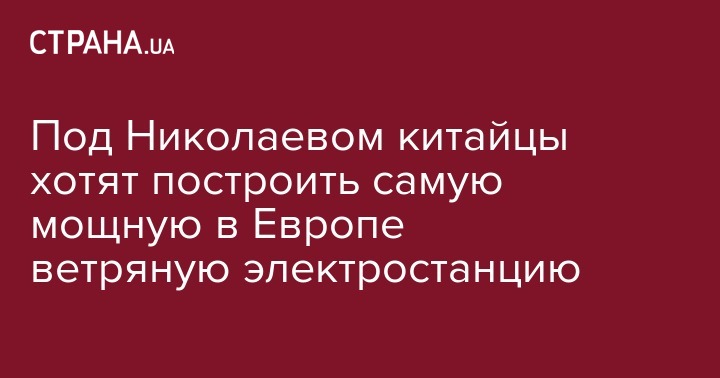 Китайские инвесторы в этом году построят в Березанском районе Николаевской области ветряную электростанцию на 500 МВт, что равноценно по мощности одному энергоблоку АЭС.