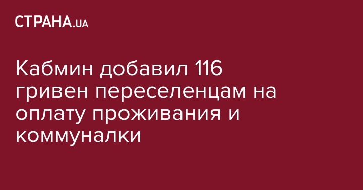 Кабмин добавил 116 гривен переселенцам на оплату проживания и коммуналки