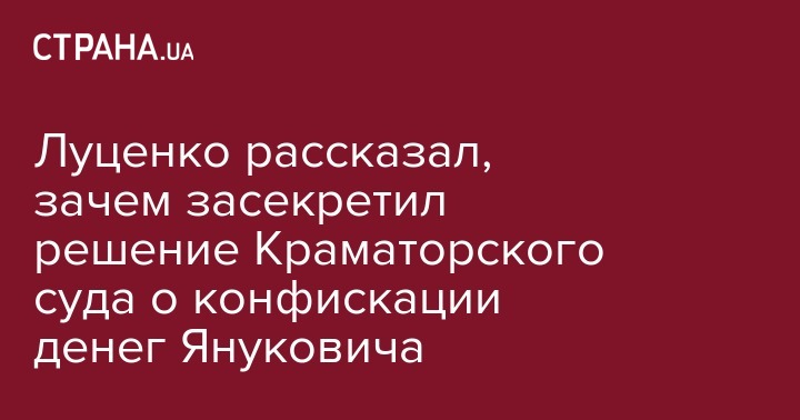 Луценко рассказал, зачем засекретил решение Краматорского суда о конфискации денег Януковича