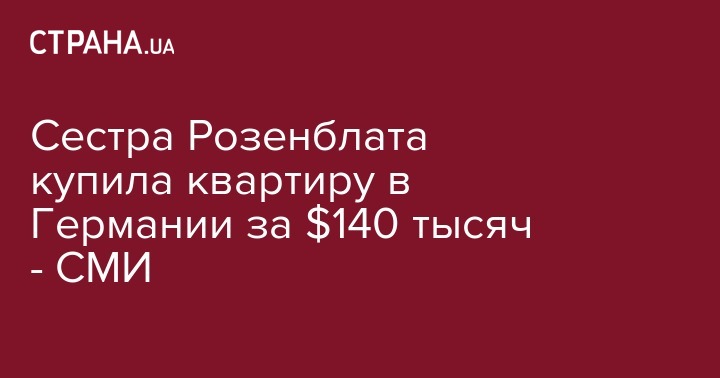 Сестра скандального нардепа от БПП Борислава Розенблата, депутат Новоград-Волынского районного совета Елена Розенблат приобрела квартиру в Германии за почти 4 миллиона гривен (около $140 тыс).