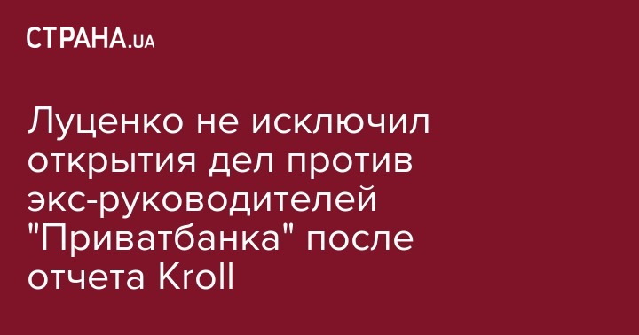 Генпрокурор Юрий Луценко не исключает возможности открытия уголовных производств в отношении бывших акционеров, владельцев "Приватбанка" по результатам расследования аудиторской компании Kroll.