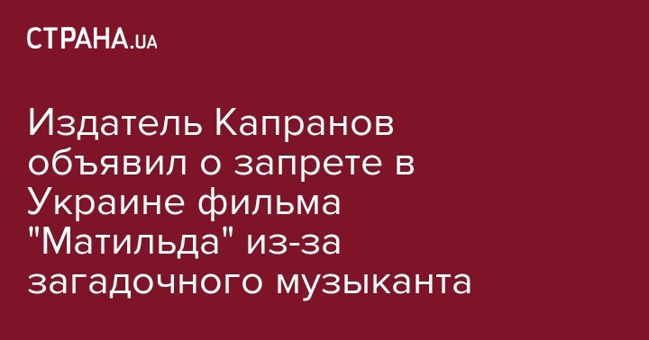 Входящий в экспертный совет при Госкино книгоиздатель Дмитрий Капранов заявил, что скандальный российский фильм "Матильда" запретили к прокату в Украине.