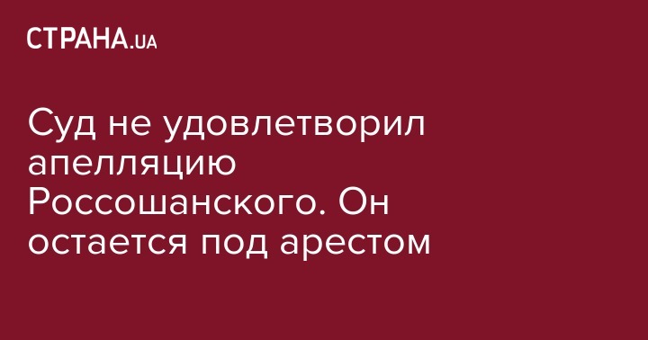 Суд не удовлетворил апелляцию Россошанского. Он остается под арестом