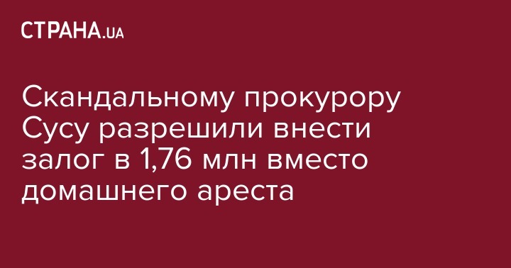 Скандальному прокурору Дмитрию Сусу разрешили внести залог в 1,76 млн гривен в качестве альтернативы домашнего ареста. Решение принял Соломенский райсуд еще 16 января, передают "Украинские новости".