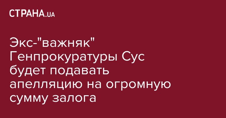 Экс-"важняк" Генпрокуратуры Сус будет подавать апелляцию на огромную сумму залога
