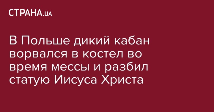 В Польше дикий кабан ворвался в костел во время мессы и разбил статую Иисуса Христа