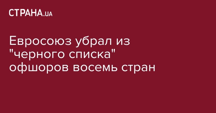 Евросоюз исключил восемь стран и территорий из "черного списка" офшоров, которые не принимают должных мер для обеспечения финансовой прозрачности и борьбы с налоговыми преступлениями. Об этом сообщают "Вести" со ссылкой на Совет ЕС.