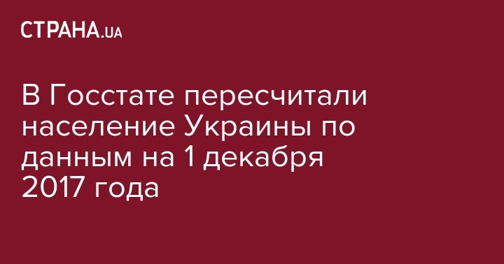 В Госстате пересчитали население Украины по данным на 1 декабря 2017 года