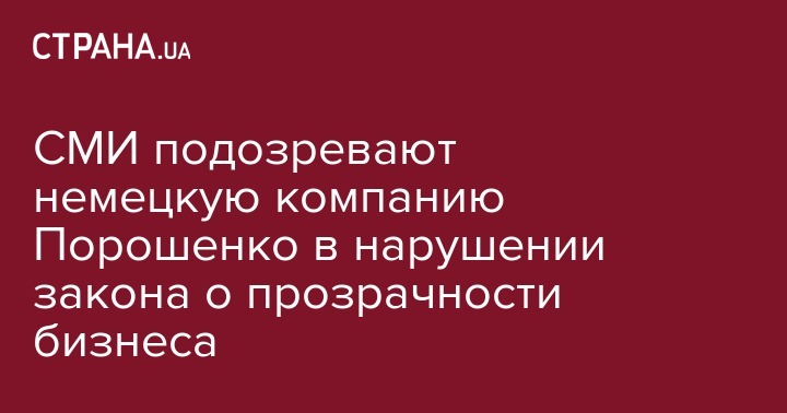 СМИ подозревают немецкую компанию Порошенко в нарушении закона о прозрачности бизнеса