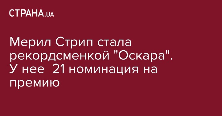Голливудская актриса Мерил Стрип установила рекорд, получив 21-ую номинацию на кинопремию "Оскар". Об этом стало известно с официального сайта кинопремии.