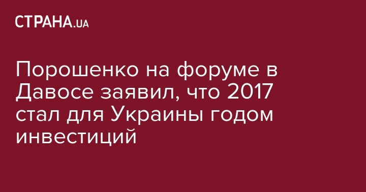 Президент Украины Петр Порошенко отметил на "Украинском завтраке" в Давосе, что 2017 год в Украине стал годом инвестиций. Об этом сообщает "112 Украина"