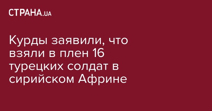 Курды заявили, что взяли в плен 16 турецких солдат в ходе боев в сирийском Африне. Об этом РИА Новости заявил представитель штаба YPG (сил самообороны курдов) Ахмед Шауки.