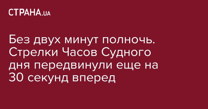 В четверг, 25 января, стрелки символических Часов Судного дня в США были передвинуты на 30 секунд вперед, сообщили представители журнала Бюллетень ученых-атомщиков (Bulletin of Atomic Scientists).