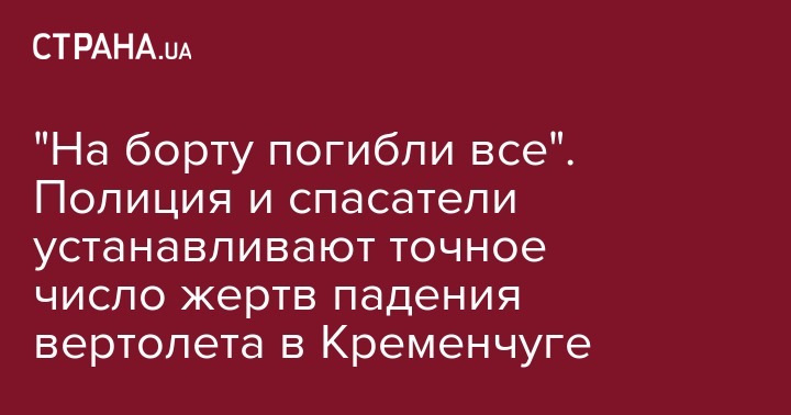 "На борту погибли все". Полиция и спасатели устанавливают точное число жертв падения вертолета в Кременчуге
